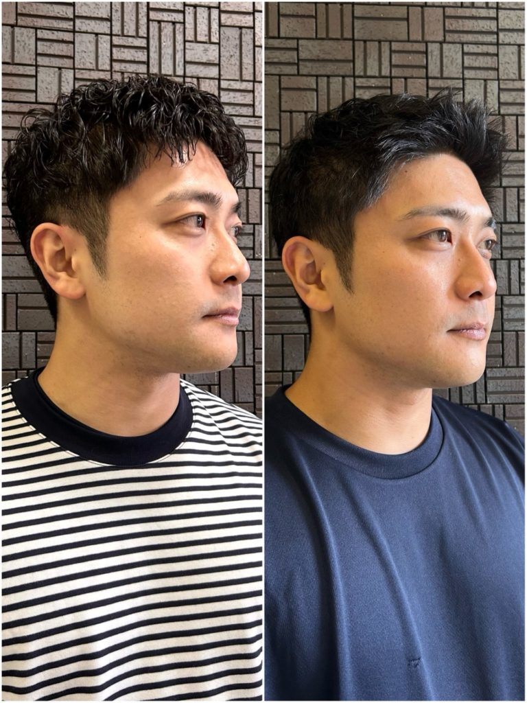 短めのツーブロックにした時に浮いてカッパみたいに広がってしまう方はパーマをすると毛先が丸まって広がりが気になりにくくなるかと思います!