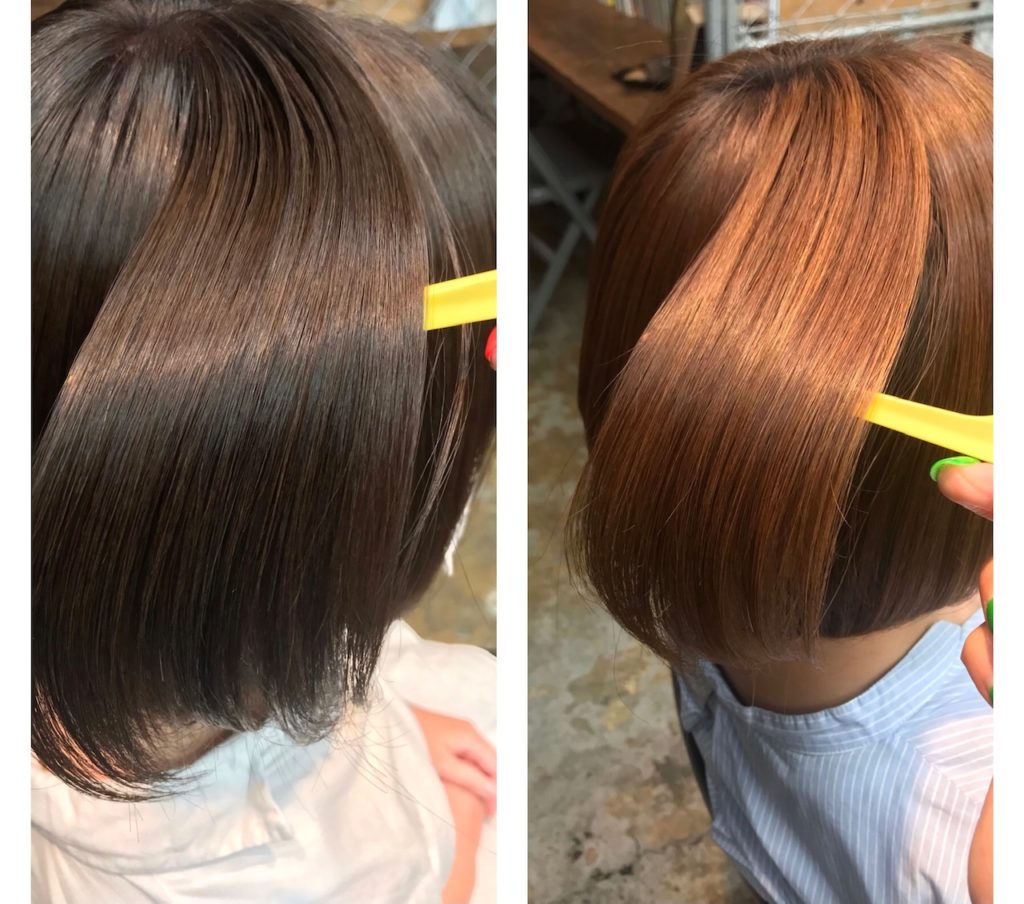 根元が2センチ以上伸びている場合も、全体をよほど暗くしない場合はトーンアップとなります。(この場合は根元染めをおすすめします)